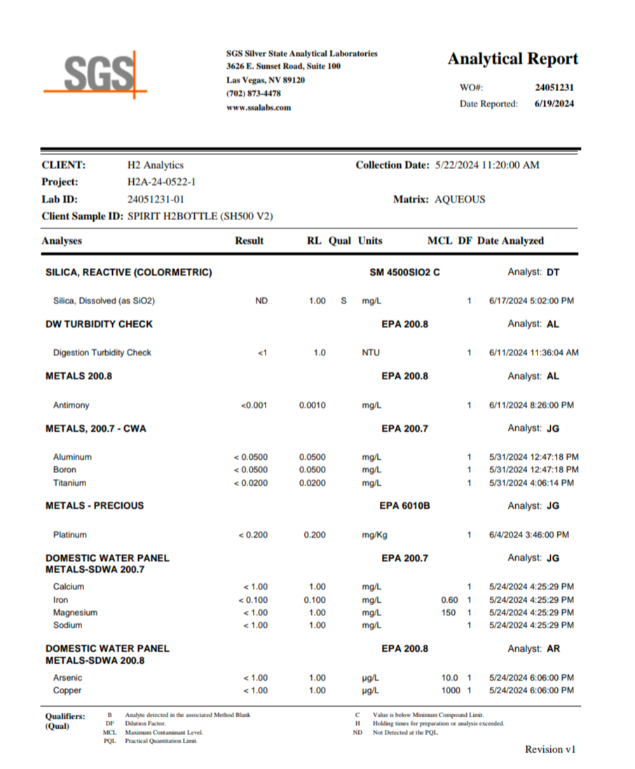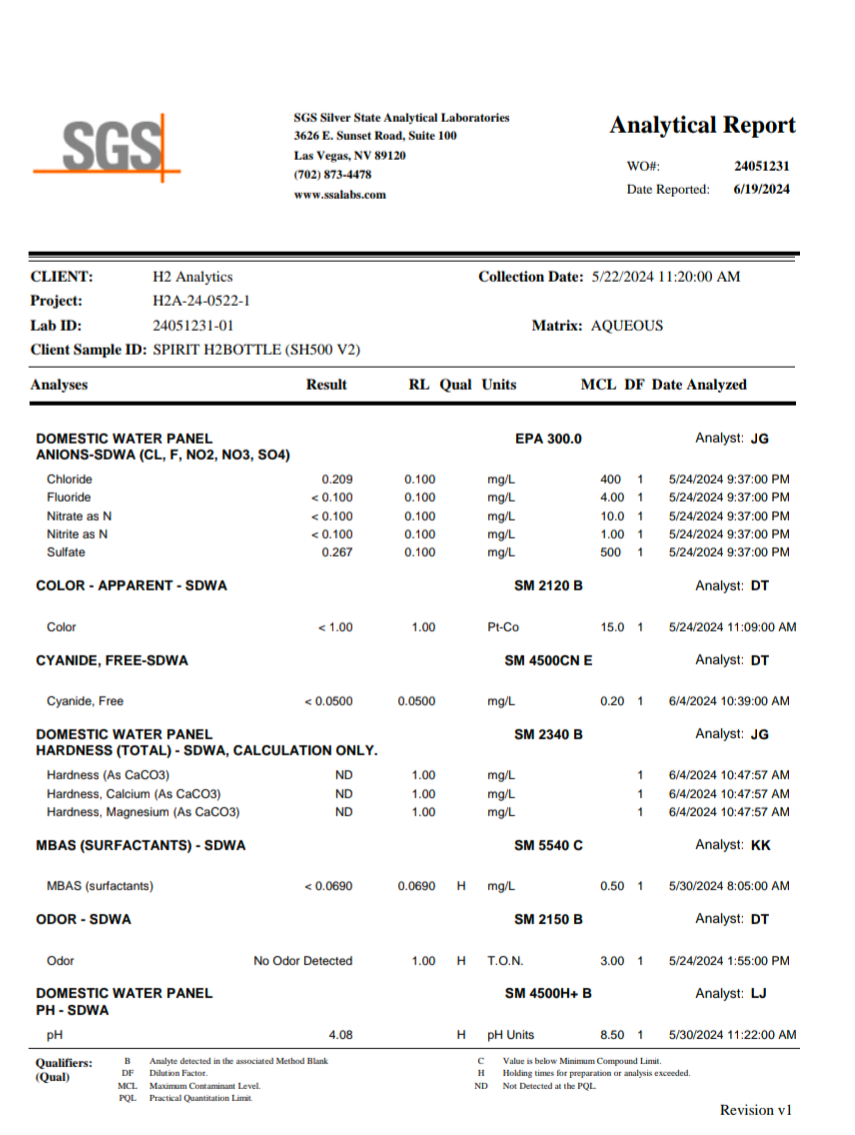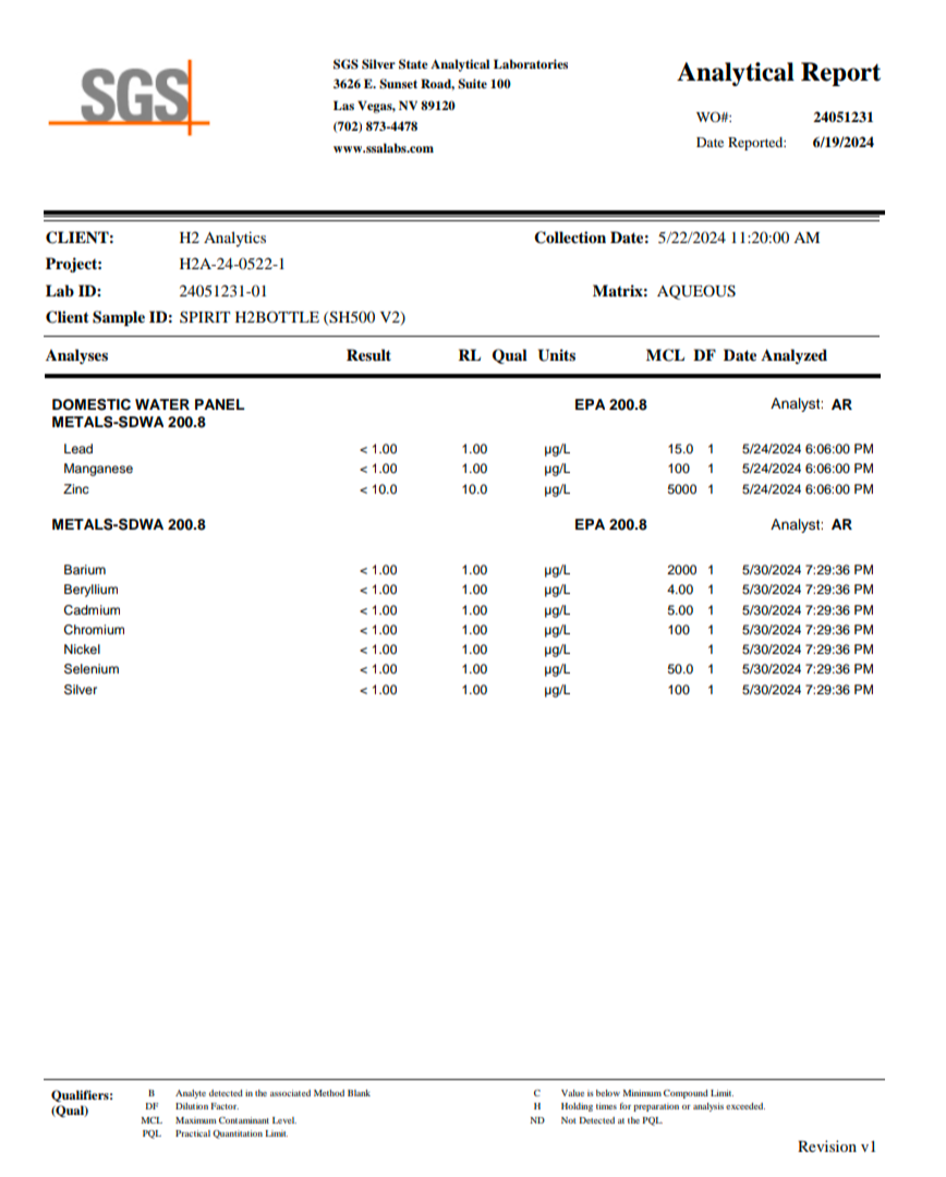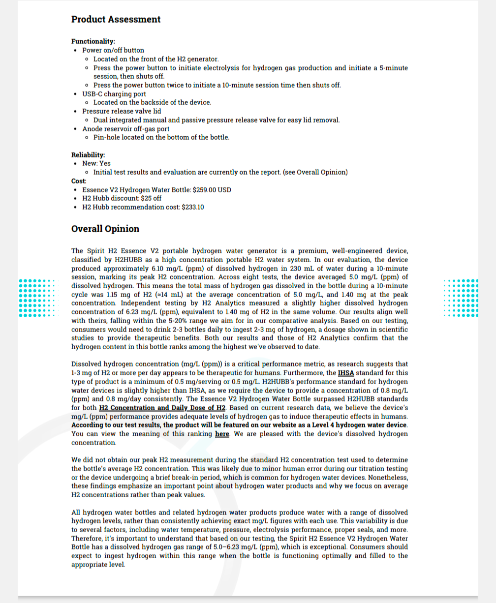 **SPIRIT H2 ESSENCE V2 PORTABLE H2 BOTTLE - MERCURY GREY**